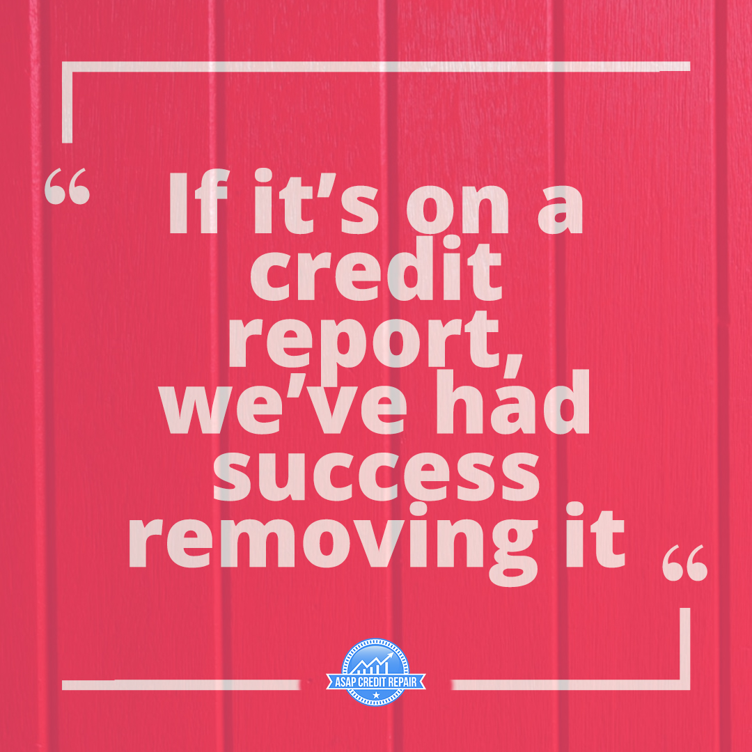 ASAP Credit Repair is a Family Owned and Operated 30 day credit repair company. We are fast and efficient and customer services and results are our #1 goals! All our deletions are permanent and we offer a 100% money back guarantee.